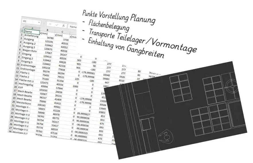 Bevor Sie etwas zeigen können, benötigen Sie noch ein paar Pfeile in der CAD-Zeichnung, um die Prozesse zu verdeutlichen. Jedoch haben Sie selbst aber nicht die Software auf Ihrem Rechner und der Experte für sowas ist auch gerade nicht im Haus. Auch die Tabellen bräuchten eigentlich noch mal eine Überarbeitung. Keiner in der Runde steckt so tief im Thema wie Sie und Ihr Kollege. Aber die Zeit drängt. Sie entscheiden sich alles so zu belassen und nur einige Screenshots des Layouts in Ihre Folien zu übernehmen.